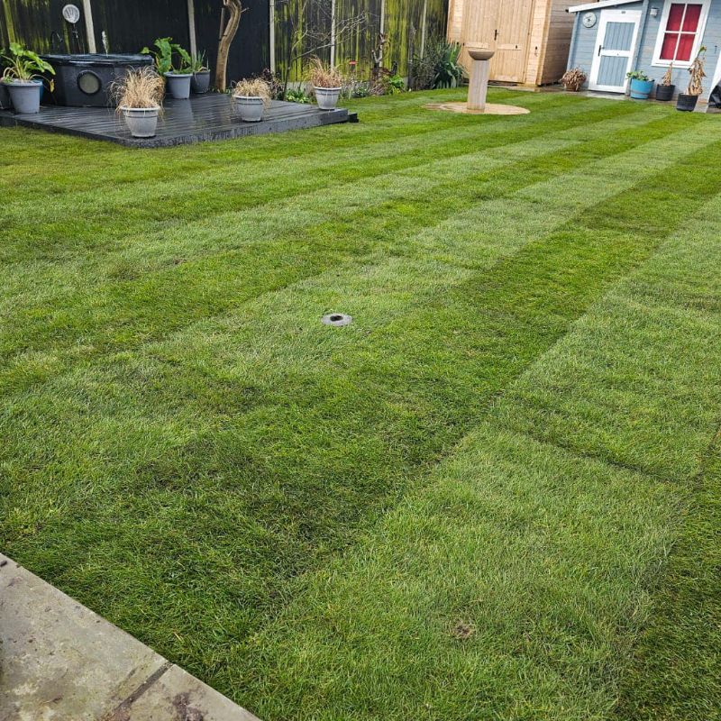 New natural lawn supplied & installed by The Grass Master Ltd.